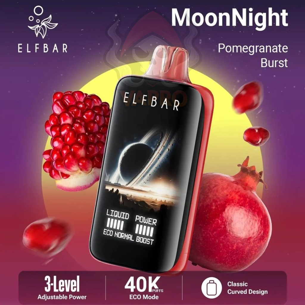Upgrade your vaping experience with the ElfBar Moon Night 40000 Puffs Disposable Vape, now available at Vapro.ae. Enjoy intelligent design, rich flavor, and unmatched longevity, all in one compact, stylish device.