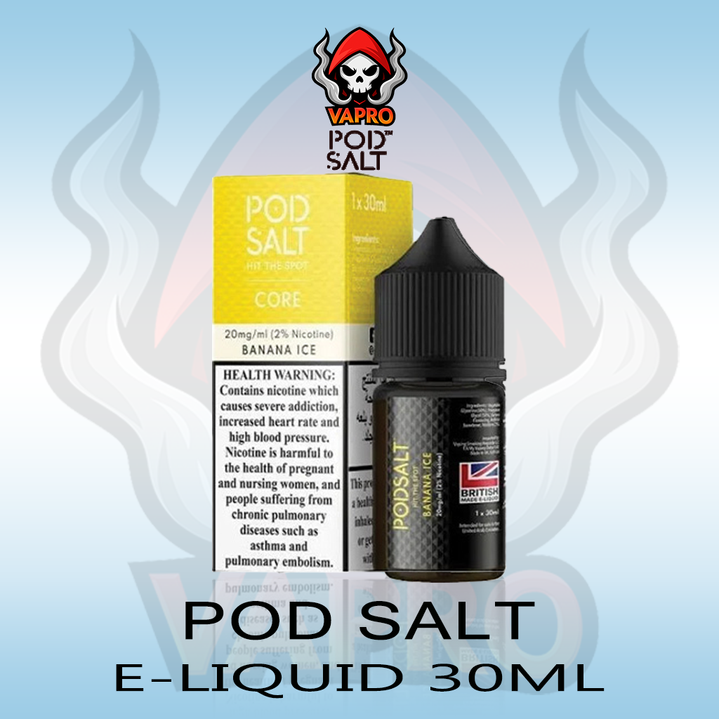 In the vaping community, Pod Salt is well-known for fusing superior flavor with sophisticated nicotine salt functionality. Strict quality control, established flavor consistency, and UK manufacturing standards support every bottle of Banana Ice. For instance, the brand uses the ice twist, creaminess, and banana authenticity to highlight the Banana Ice flavor.