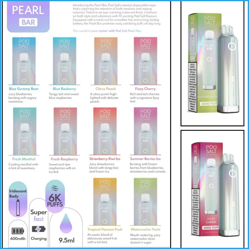 Each flavor bursts with personality, whether you crave something cool, fruity, or candy-inspired, there’s a Pod Salt Pearl Bar flavor that fits your mood.