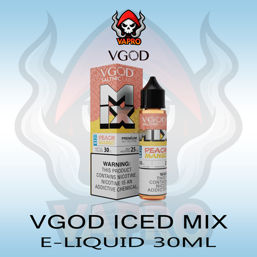 Experience tropical refreshment like never before with the VGOD Mix Series Ice Peach Mango SaltNic 30ml.